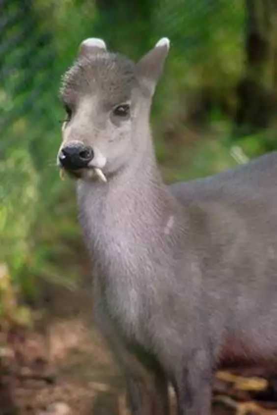 The black muntjac earns its name from its dense, velvety black coat, which contrasts with a white chin and underbelly. Adult males grow up to 80 centimeters in shoulder height and weigh around 25–30 kilograms, while females are slightly smaller. The most striking feature in males is a pair of elongated upper canines, resembling "vampire fangs," which are used in territorial disputes. Both sexes sport a tuft of dark hair on the forehead, giving them a unique, almost mythical appearance. Their short, unbranched antlers (in males) are shed annually, and their agile build allows them to navigate steep, forested terrain with ease.